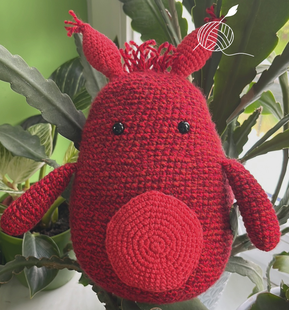 Tego czerwonego stworka zrobiłam modyfikując wzór na Totoro. Więcej o Totoro znajdziesz w poprzednich wpisach. Do dzisiejszego projektu wykorzystałam miękkie nici w trzech odcieniach dla ciekawego efektu wizualnego. Do wypełnienia wykorzystałam silikonowe kulki. Tym razem zależało mi na zrobieniu miękkiego stworka idealnego do przytulania i spania.